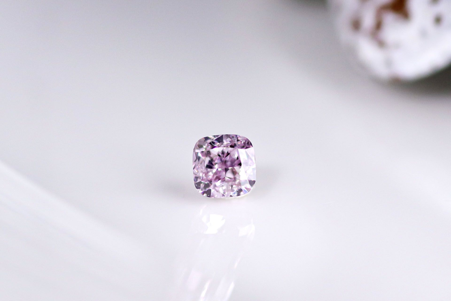 写真:ファンシーパープルピンクダイヤモンドとCGLのグレーディングレポート