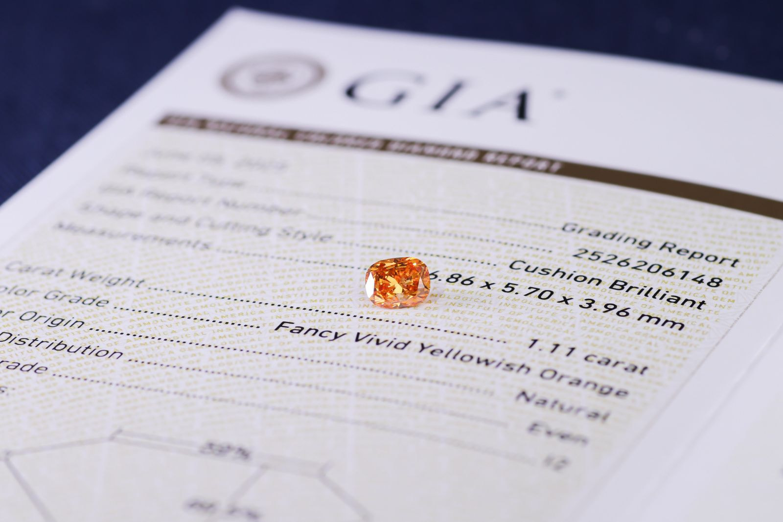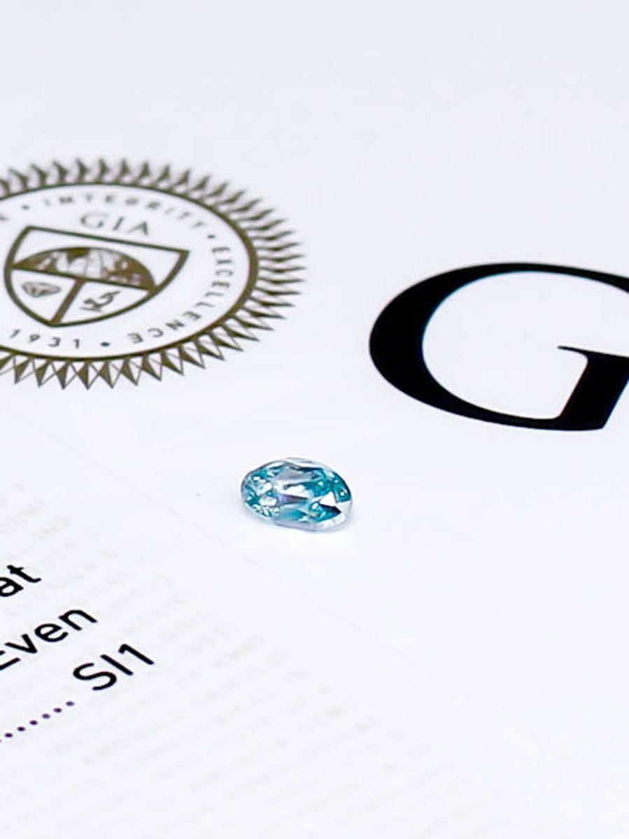 写真ファンシーブルーダイヤモンドとGIAのレポート