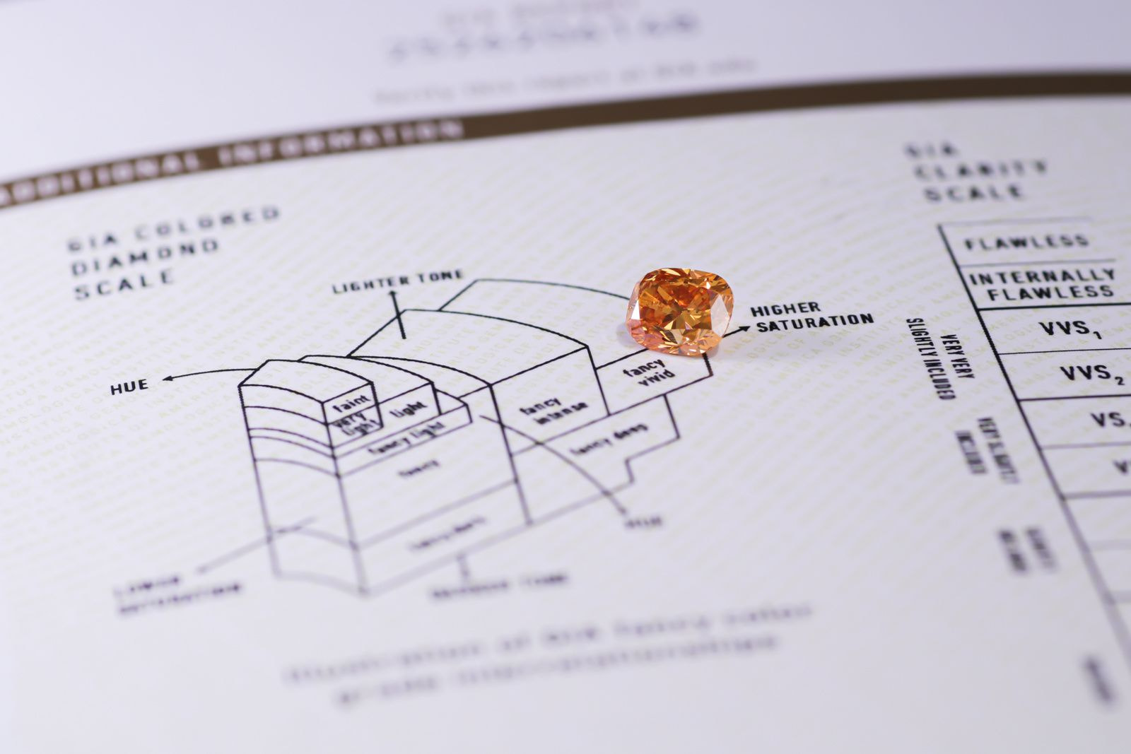 ファンシーカラーダイヤモンドは、見た目が美しいだけで価値が決まる宝石ではありません。